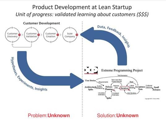 - Antes de la construcción del producto: descubrimiento de problemas de mercado, análisis y cuantificación de la oportunidad de mercado, definición de segmentos (necesidades, personas, escenarios) e identificación de los más interesantes, elaboración de concepto, visión y roadmap del producto, propuesta de valor, diseños iniciales.