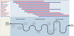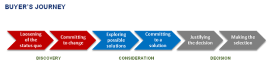 El Marketing de Contenidos (o tal vez deberíamos llamarlo, “basado en contenidos”) consiste en proporcionar a nuestros clientes (potenciales y actuales) la información más adecuada para poder conseguir nuestros objetivos. Específicamente, cuando se trata de generar demanda y vender, estos contenidos deben ayudar a nuestro cliente a recorrer su “viaje del comprador”, desde sus fases iniciales de descubrimiento de su problema / necesidad hasta las finales de toma de decisión de compra.